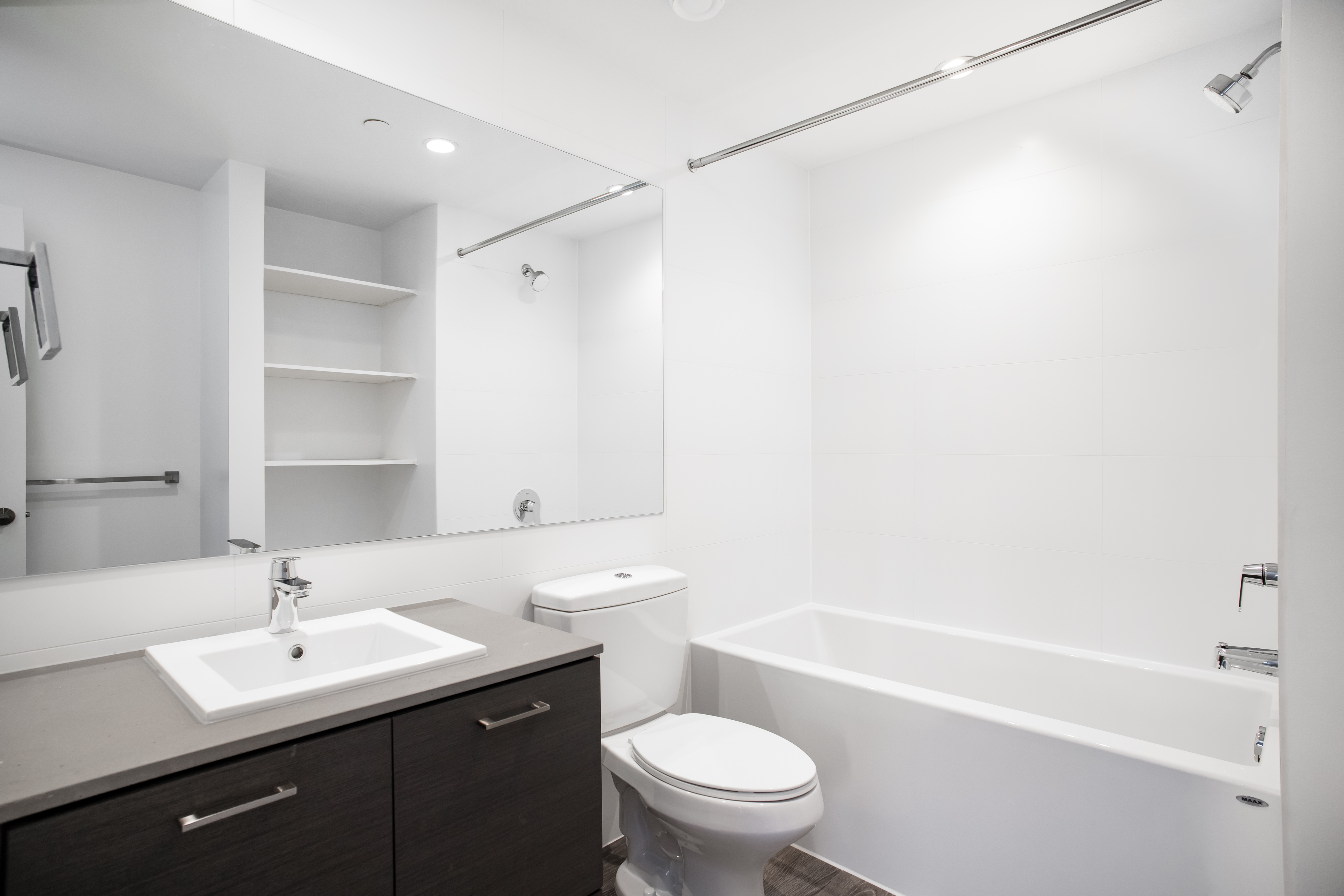 Unique to the top floor, our D5 plan is expertly laid out. With rooms on opposing sides, and two bathrooms, this floor plan is the perfect home those looking for an extra bit of privacy. The large, 300sqft terrace looks East over Emerson street, and offers quiet views of the mountains. This corner suite features an L-shaped kitchen to maximize countertop space while leaving you with a flexible, open concept. A full stainless-steel appliance package finishes this quality kitchen. Enjoy the comfort of in-suite laundry, deep soaker tubs, and plenty of closet space.